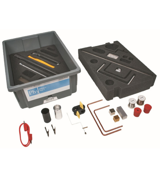 Žáková STEM souprava Teplo 2 - PHYWE TESS rozšířená souprava, vhodná zejména pro vyučování přírodních věd na základní a střední školy (ročníky 7-10). Témata: Termodynamika. Tato sada umožňuje provést 13 rozšířených experimentů na následující témata: Tepelná rovnováha a měření teploty (1 experiment). Tepelná roztažnost (2 experimenty). Přenos tepla (4 experimenty). Tepelná energie (4 experimenty). Změna skupenského stavu (2 experimenty). Nutné a doporučené příslušenství (není součástí dodávky): Sada Teplo 1 - PHYWE TESS, sada drátů na tepelnou roztažnost, analogový multimetr, různé potřebné chemikálie.