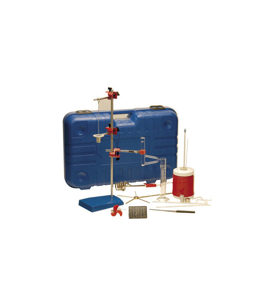 Vše potřebné pro více než 30 pokusů na úrovni základní školy. Pokusy: termometrie, kalorimetrie, roztažnost pevných látek, kapalin a plynů, změna stavu, šíření tepla, přenos energie. Vše je uloženo v kufříku 700mm × 450mm × 180mm.
