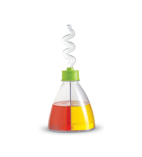 Nádoba na míchání barev pro nejmenší výzkumníky. Banka má dvě komory pro naplnění dvěma tekutinami různých barev. Stačí naplnit oddělené komory nádobky vodou dvou různých barev (použijte potravinářské barvy/nejsou součástí balení), otočit a je to. Přes zvlněnou brčko poteče voda nové, smíšené barvy. Doprodej.