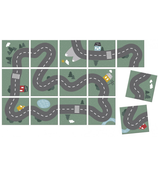 Vyskládejte si 15 dílků podle sebe a vytvořte zajímavý koberec s cestou. Je vyroben ze 100% polyesteru. Spodní strana je protiskluzová. Rozměr dílku: 29 x 29 cm.