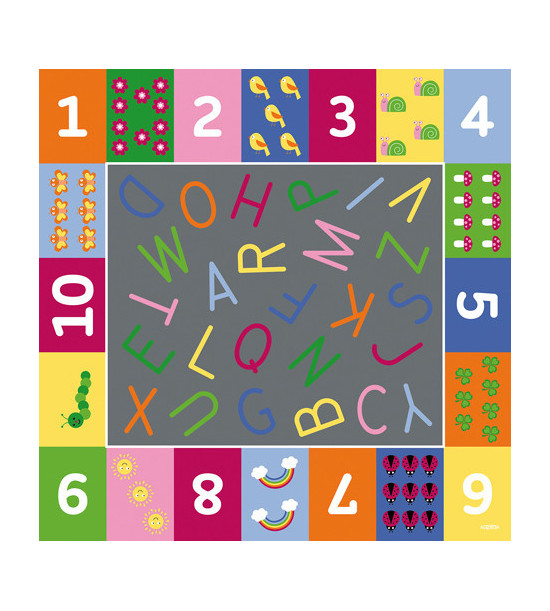 Vinylová podložka - Čísla a písmenka, 200 x 200 cm. Podložka na hry vyrobená z odolného vinylu, bez ftalátů. Je odolná vůči UV záření, a proto je vhodná pro použití i v exteriéru. Rozměry: 200 x 200 cm.