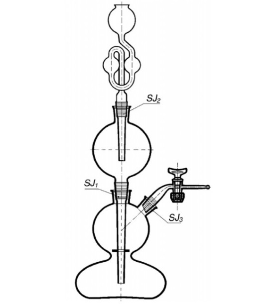 Přístroj Kippov, s polokulovitým spodním dílem a zabroušeným příslušenstvím 500ml