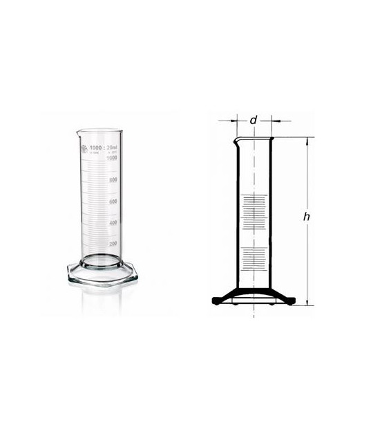 Válec odměrný nízký, s výlevkou, šestihrannou patkou, bílá graduace, třída B 1000ml