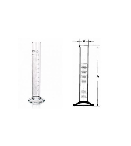 Válec odměrný vysoký, s výlevkou, šestihrannou patkou, bílá graduace, třída B 500ml