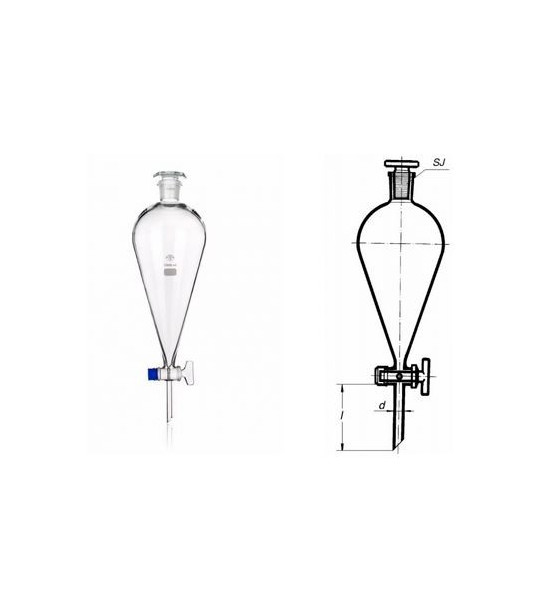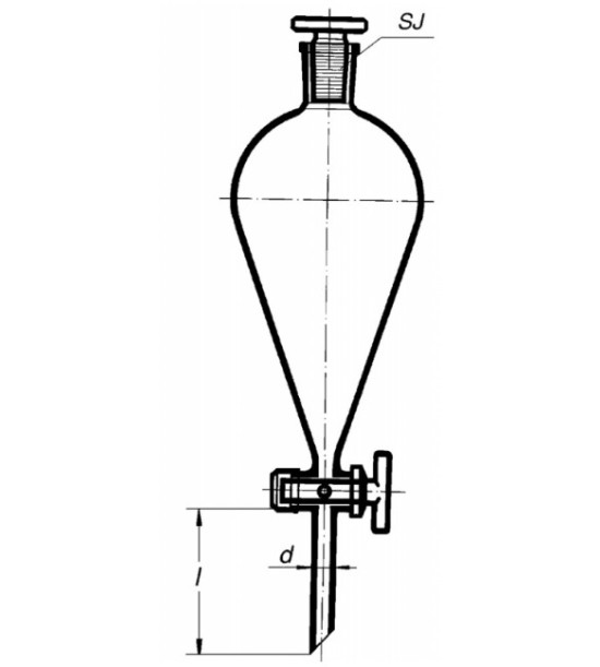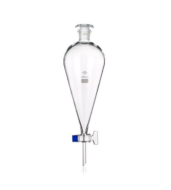 Trychtýř dělící hruškovitý s NZ, se skleněnou zátkou a skleněným kohoutem 250ml