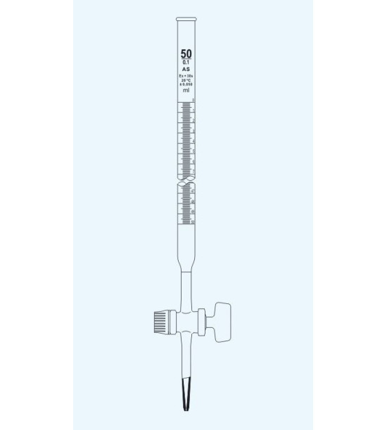 Byreta s přímým kohoutem, se skleněným kladívkem, tř. AS, 25ml, 1:10