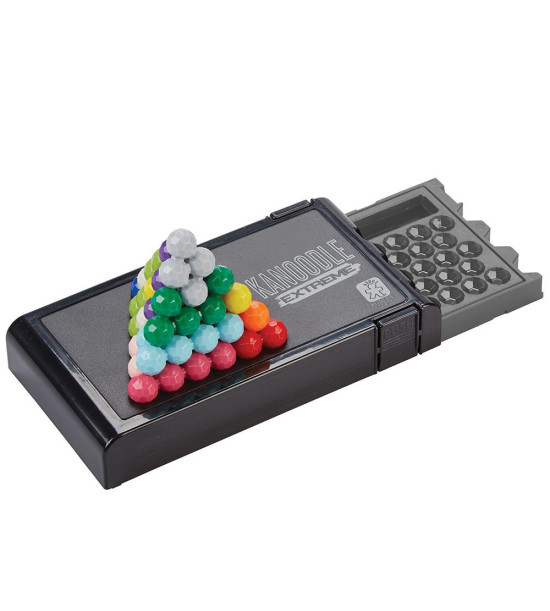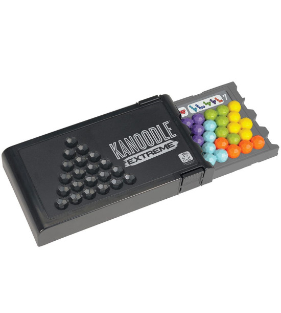 Procvičte si mozek! Máte-li rádi původní hru Kanoodle, budete milovat Kanoodle Extreme Game s více než 300 hrami. Hlavolam Kanoodle Extreme podporuje prostorové uvažování, řešení problémů, kritické myšlení a strategické myšlení. Kanoodle Extreme obsahuje 3 typy hádanek: Posuvné 2D hádanky, 2D hádanky a 3D pyramidové hádanky. Chcete-li hrát, umístěte dílky tak, jak je znázorněno v knize úloh – hlavním úkolem je rozhodnout, kam a jak půjdou zbývající dílky k dokončení skládačky. Zní to jednoduše? Ne tak rychle! Tyto hádanky na rozhýbání mysli se stávají stále náročnějšími a dají vašemu mozku pořádně zabrat. Dospělí si také zamilují tuto přenosnou hru, která je ideální i pro skládání na cestách. Tato sada obsahuje 12 dílků skládačky pro 2D a 3D skládání, přenosný kufřík s posuvným zásobníkem a 48stránkovou, plnobarevnou knihu úkolů s 303 hádankami, které šimrají mozek. Pro 1 hráče. Pořiďte si hlavolam Kanoodle pro děti a najdete v něm způsob, jak děti pobavit a zároveň je rozvíjet. Doporučený věk je 7 – 11 let. Nevhodné pro děti do 3 let, nebezpečí vdechnutí malých částí.