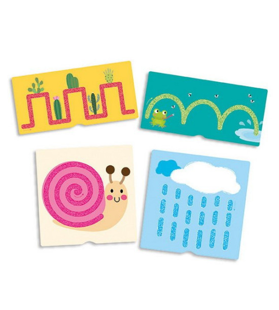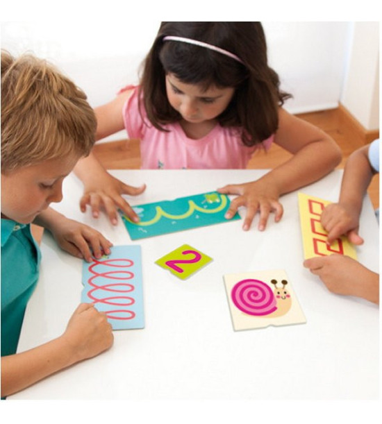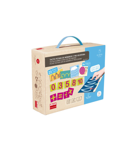Hra obsahuje 23 oboustranných kartiček ze silného, pevného, kvalitního kartonu. Děti pomocí prstu obkreslují vystouplé tvary, čísla a matematická znaménka. Pomocí hmatu se seznamují s různými cestičkami a čísly. Hra je inspirována metodikou Montessori, podporuje soustředění a pozornost. Rozměr balení: 23,6 x 18,7 x 7,2 cm.