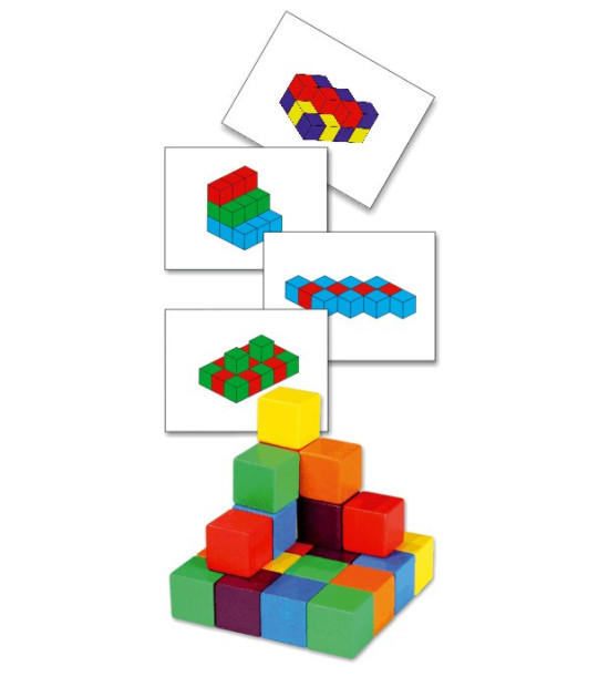 Kostka - důležitá pomůcka při matematické představivosti a matematických výpočtech. Dostatečné množství pro práci všech žáků ve třídě. 100ks barevných dřevěných kostek (2cm) v 6 barvách. Baleno v plastové krabici. Ke kostkám je nabízena samostatně prodejná sada 15 oboustranných pracovních karet.