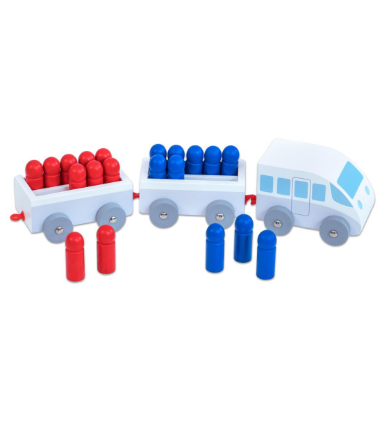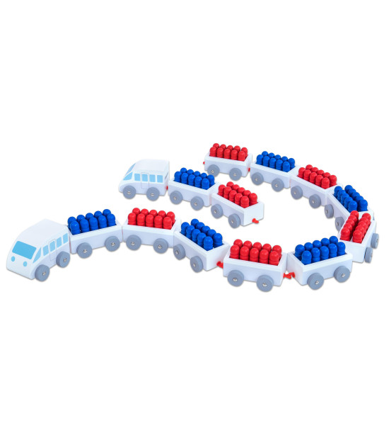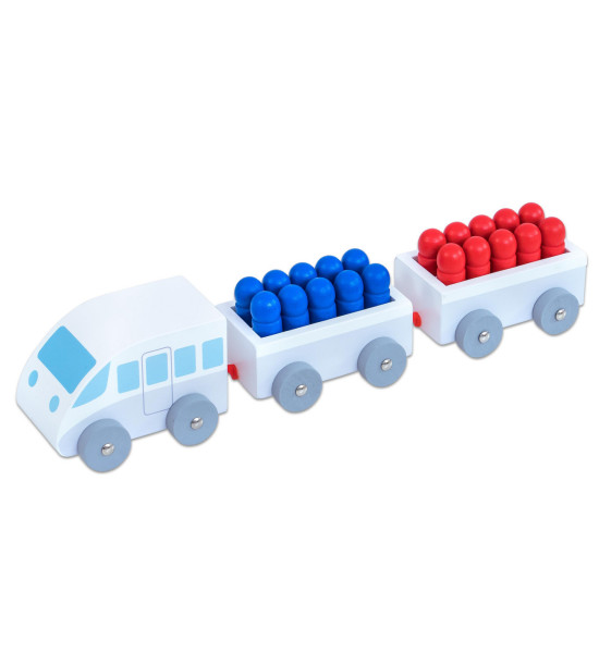 Jednoduchá, názorná a hravá pomůcka pro základní matematické operace: množství, porovnávání, třídění, počítání, řešení slovních úkolů, tvoření grafů, sestavování číselné osy a každodenní numerické rozcvičky. Rozměr vagónku je cca 12cm.