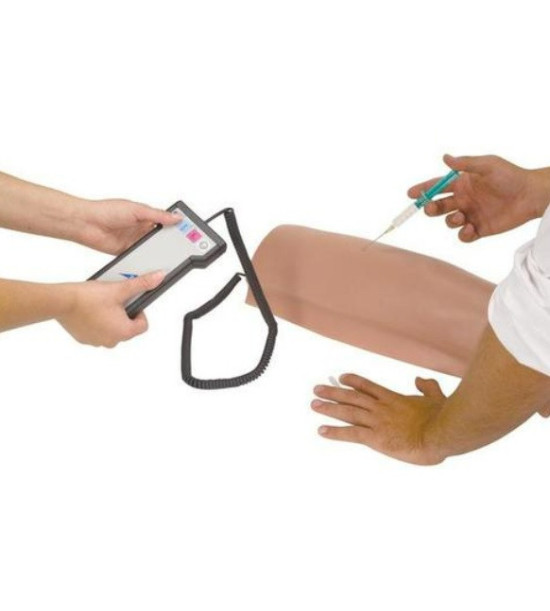 Intramuskulární injekce se dá reálně nacvičit i bez skutečného pacienta! Tento vysoce kvalitní intramuskulární simulátor představuje pravou horní část nohy a realisticky zobrazuje všechny důležité anatomické, hmatatelné orientační body, jako je patela a trochanter (chocholík). Realistická anatomie umožňuje vyhodnotit správné intramuskulární injekce grafickým způsobem. Zabudovaná jemná elektronika produkuje audio-vizuální zpětnou vazbu výsledku. správná injekce, kontakt s kostí nebo nesprávné místo. Realistická silikonová kůže je extrémně odolná a v případě potřeby se dá rychle a snadno vyměnit. Intramuskulární simulátor se dodává 2 AA bateriemi, náhradní kůží, 5 ml injekční stříkačkou a injekční jehlou 21G/0,8. Důležité: Neplňte injekční stříkačku tekutinou. Simulátor je určen pouze pro "suchý" nácvik správné aplikace injekce!