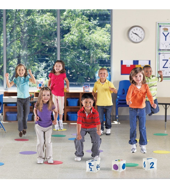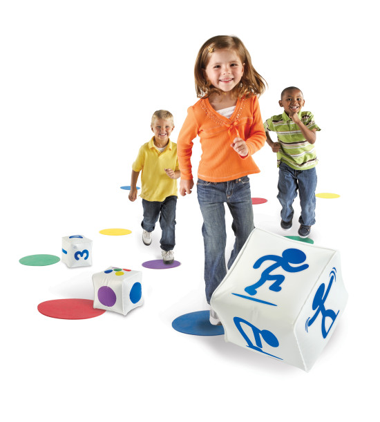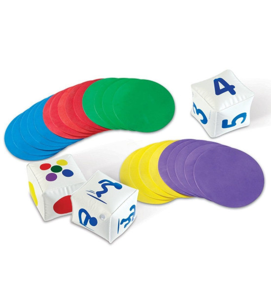 Postav se na barevnou podložku, hoď velkou kostkou, uvidíš které cvičení padne a kolikkrát ho opakovat. Obsahuje barevné, kulaté pěnové podložky 25x25 cm, 3 nafukovací kostky se cvičeními, barvami a čísly 12 cm, návod. Obsahuje malé části, nevhodné pro děti do 3 let. Věk 3+