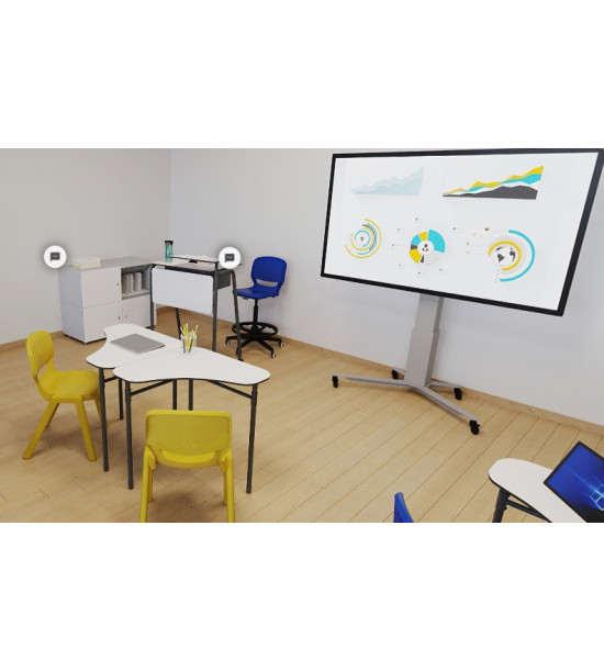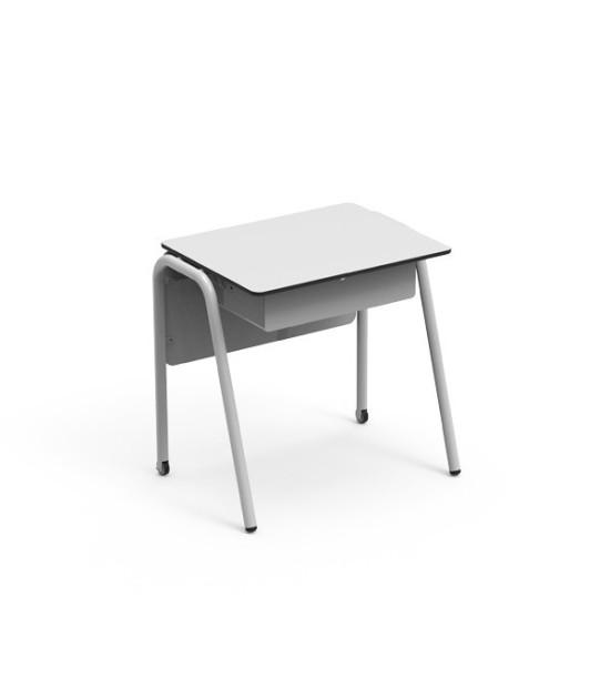 Učitelský 1-místný stůl, výška 74 cm. Vrchní deska tloušťky 13mm. Vhodný pro kolaborativní vyučování. Rozměry (délka x šířka x výška): 75 x 55 x 74 cm. Všeobecné vlastnosti: Stoly mají konstrukci z trubky o průměru 35x2 mm v obráceném tvaru „U“. Pod vrchní deskou je odkládací prostor s bočními stranami, spodní a přední hranou. - Vlastnosti stolové desky: vrchní dřevovláknité desky Compacmel® s vysokou hustotou vláken a melaninovým povlakem mají VYSOKOU MECHANICKOU PEVNOST a jsou odolné vůči vlhkosti. Vrchní deska je tloušťky 13mm, se zaoblenými rohy. Barvy desky: světle šedá, bílá. - Vlastnosti kovového rámu: nátěr epoxidovou pryskyřicí, barvy: antracitová RAL 7021, šedá RAL 7035. - Zadní nohy s polyamidovými koncovkami a přední nohy se 2 kolečky. Celkové rozměry – 77,5 x 55,7 x 74 cm. Dostupný i ve 2-místné verzi. Cena instalace a dopravy se kalkuluje samostatně.