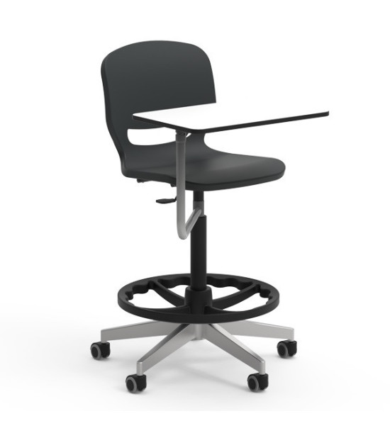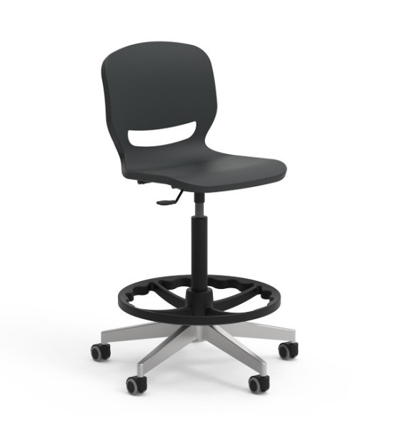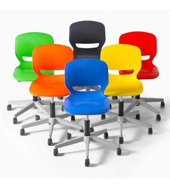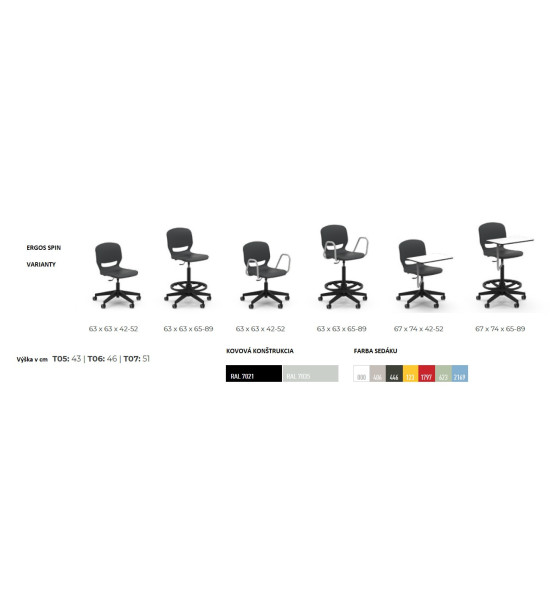 Učitelská laboratorní židle ERGOS SPIN, s oporou nohou, výškovonastavitelná 65 – 89 cm. Židle „SPIN“ s otočným rámem a výškovým nastavením, umožňuje najít ideální polohu a zajistit správné a vyrovnané držení těla, přináší řadu výhod pro pohybový aparát a zlepšuje koncentraci při všech aktivitách. Sedák má 25 mm polypropylenovou skořepinu a výztuž po celém obvodu pro větší odolnost a trvanlivost. Opěradlo židle má výřez, který umožňuje „dýchání“ pro větší pohodlí. Bederní opěrka snižuje únavu způsobenou dlouhým časem vsedě. Široké sedátko je bez hran, zaoblený profil pro správný úhel ohybu kolene napomáhá krevnímu oběhu. Židle má vyšší odolnost vůči nárazům, poškrábání a opotřebení. Nevyžaduje údržbu. Design je bez prohlubní pro snadné a rychlé čištění. Rozměry: 63.5 x 63 x 65 – 89 cm. Výškově nastavitelná židle s 5 hliníkovýma nohama s polyamidovými kolečky. Židle „SPIN“ lze doplnit o volitelné příslušenství přidáním područek, stolku a čalouní sedáku. Volitelné příslušenství není součástí základní verze, objednává se samostatně!