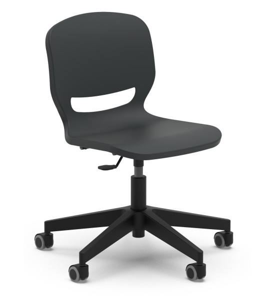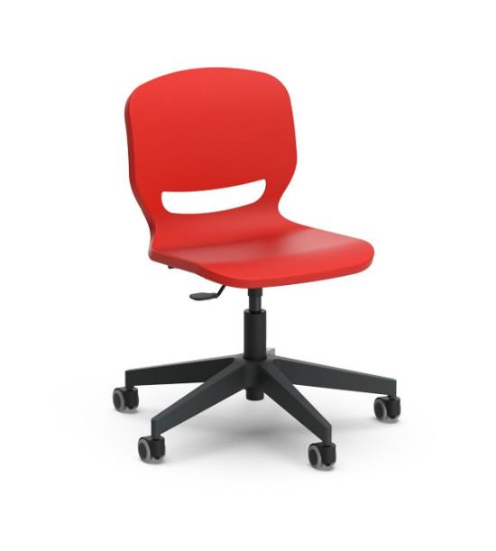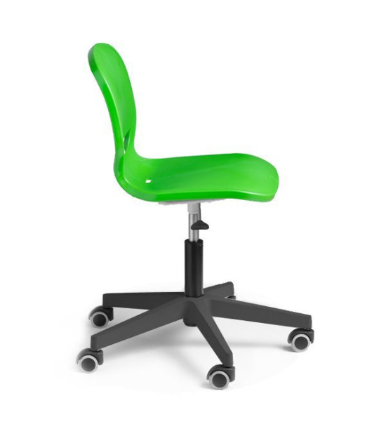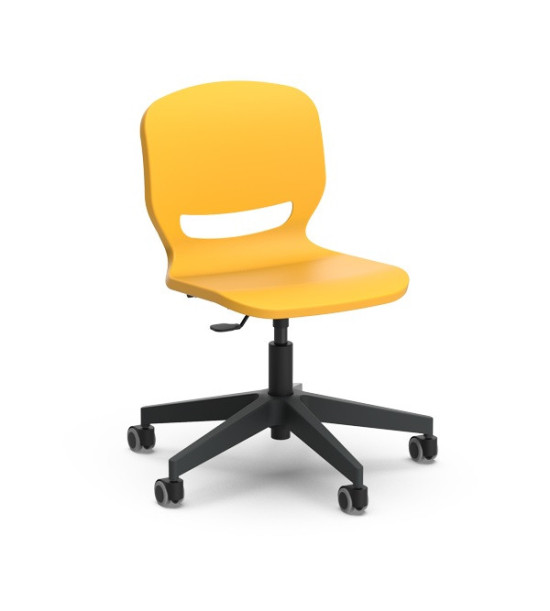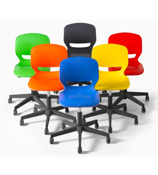 Žiacka stolička na kolieskach ERGOS SPIN, výškovonastaviteľná 42 – 52 cm. Stolička „SPIN“ s otočným rámom a výškovým nastavením, umožňuje nájsť ideálnu polohu a zabezpečiť správne a vyrovnané držanie tela, prináša množstvo výhod pre pohybový aparát a zlepšuje koncentráciu pri všetkých aktivitách. Sedadlo má 25 mm polypropylénovú škrupinu a výstuž po celom obvode pre väčšiu odolnosť a trvanlivosť. Operadlo stoličky má výrez, ktorý umožňuje „dýchanie“ pre väčšie pohodlie. Bedrová opierka znižuje únavu spôsobenú dlhým časom v sede. Široké sedadlo je bez hrán, zaoblený profil pre správny uhol ohybu kolena napomáha krvnému obehu. Stolička má vyššia odolnosť voči nárazom, poškriabaniu a opotrebovaniu. Nevyžaduje údržbu. Dizajn je bez priehlbín pre jednoduché a rýchle čistenie. Rozmery: 63 x 63 x 42 – 52 cm. Výškovo nastaviteľná stolička s 5 nylonóvymi nohami, oceľovým piestom s polyamidovými kolieskami. Stoličky „SPIN“ je možné doplniť o voliteľné príslušenstvo pridaním podrúčok, stolíka a čalúnenia sedáka. Voliteľné príslušenstvo nie je súčasťou základnej verzie, objednáva sa samostatne!
