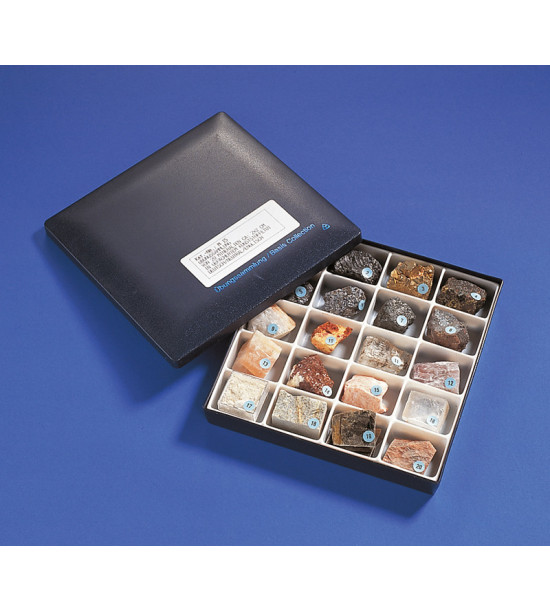 Kolekce nejběžnějších 20 minerálů nacházejících se v zemské kůře. Obsahuje vzorky prvků, sulfidů, oxidů, halogenidů, uhličitanů, sulfátů a křemičitanů. Kolekce minerálů jsou dodávány v boxech s přihrádkami. Jednotlivé minerály jsou velké cca 2×2cm a jsou označeny čísly dle přiloženého seznamu.