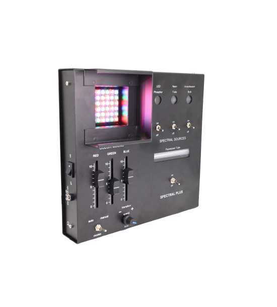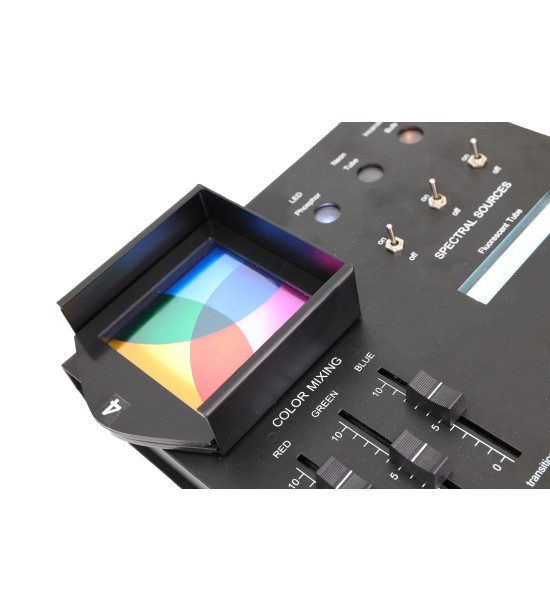 Demonstrační sada Spectral Plus je navržena pro snadnou vizualizaci základních vlastností světla. Použitím červených, zelených a modrých LED diod, filtrů různých barev a nástavců dokážete vysvětlit aditivní a subtraktivní míchání barev, rozptyl světla, absorpci a difrakci. Použitím spektroskopu jsou studenti schopni analyzovat světlo různých zdrojů, pochopit rozdíly mezi kontinuálním a čárovým spektrem. Barva a barevné vidění je velmi zajímavá část fyziky, protože se s ní setkáváme v každodenním životě. Obsah demonstrační soupravy: RGB displej - čtvercová matice 36 LED diod (12 červených, 12 zelených, 12 modrých), neonová trubice, bílá LED s fosforovým konvertorem vlnových délek, klasická žárovka, rtuťová zářivka, sada barevných a rozptylných , spektroskopy, nožičky
