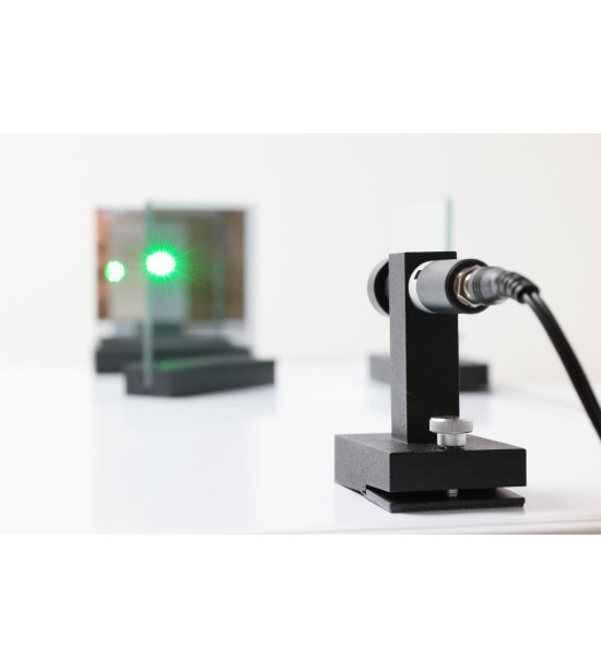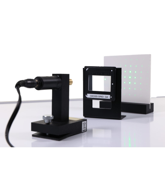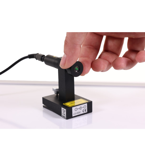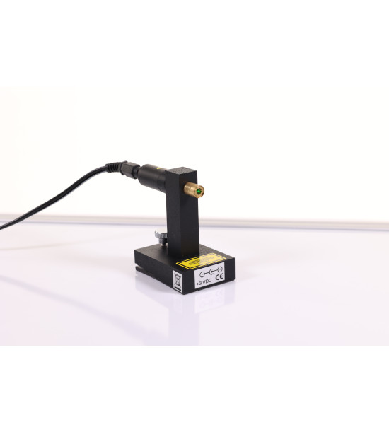 Malý, praktický zelený laser LOS-KŠ/532 o výkonu Pmax< 1mW ( třída laseru II). Regulovatelný držák umožňuje nastavit dráhu paprsku do požadovaného směru. Spodní strana je magnetická. Kolimační čočka umožňuje vytvoření rozbíhavého svazku potřebného k rekonstrukci hologramu. Napájecí zdroj je v ceně.