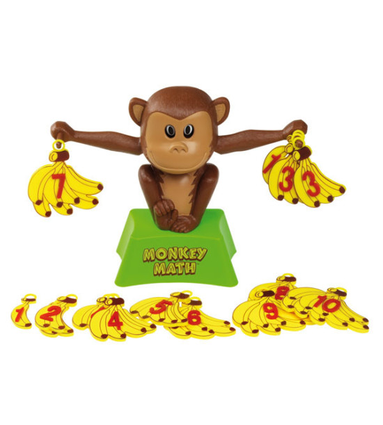 Dívá se opice přímo? Tehdy jsme počítali správně! Děti se hravě seznámí se základy matematiky. Rameno opice je ve vodorovné poloze jen tehdy, když drží stejný počet banánů. Děti se mohou seznámit s prvními pravidly sčítání, odčítání. Obsahuje: 15ks závaží ve tvaru banánů.