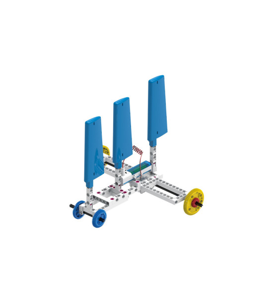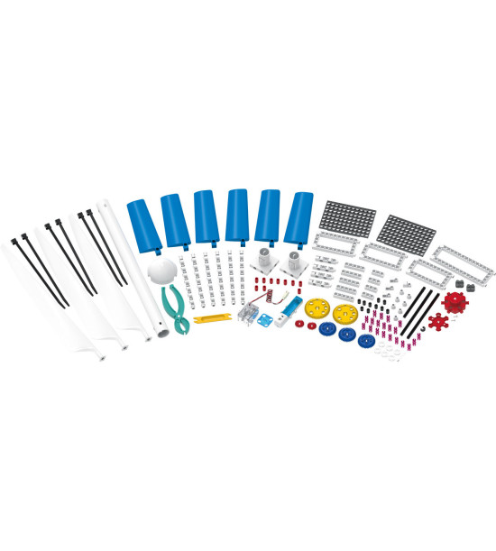 Souprava umožňuje dětem objevovat sílu větru a přeměnu na energii. Nacházejí se v ní 2 typy lopatek větrných turbín a převodovku se 3 různými převodovými poměry, aby vyhovovaly všem větrným podmínkám. Žáci si mohou nastavit úhel a počet křídel větrné turbíny pro optimální využití větru k osvětlení LED nebo dobití baterie. Nabitou baterii (není součástí balení) lze použít i pro pohon dalších 6 modelů této soupravy. Napíjení 1x baterie typu AA (HR06/KR06) - nejsou součástí balení.