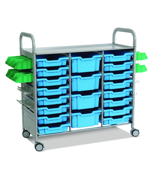 Mobilní STEAM pracoviště Callero je vyrobeno z lehké oceli bez ostrých hran, je bezpečné a snadno se s ním manévruje v rámci vzdělávacího prostoru, což dává učitelům maximální flexibilitu. Pracoviště pro studenty, mohou využívat materiál a pomůcky v uložených kontejnerech, díky čemuž je ideální pro celou řadu aktivit STEAM. Možnost dodat se s nastavitelnými háčky, moduly a drobnými zásobníky pro ukládání malých komponentů, kontejnery jsou určeny jako bezpečný úložný prostor pro větší komponenty nebo hotové projekty. Kolejničky StopSafe zvyšují bezpečnost tím, že zajišťují, aby se kontejnery mohly vytáhnout jen do určité vzdálenosti, čímž se předchází nehodám a zraněním. Robustní a uzamykatelná kolečka umožňují snadné manévrování pracoviště v rámci učebního prostoru, což umožňuje studentům pracovat v rámci pracovního komfortu a pod kontrolou učitele. Součást dodávky: 4 hluboké kontejnery F2, 16 mělkých kontejnerů F1. Celkový rozměr pracoviště: výška 1065 mm (pracovní deska 885 mm) mm x šířka 1025 mm x hloubka 435mm.