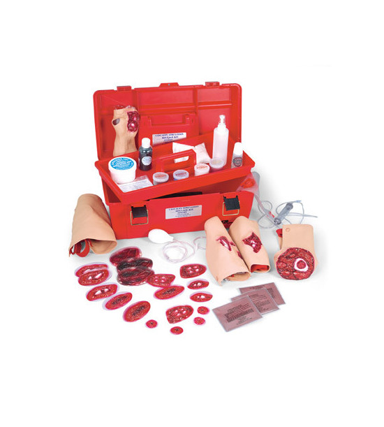 Sada pro simulaci úrazů II obsahuje materiál pro simulaci složitějších ran a pro nácvik vyšších úrovní dovedností. Obsahuje krvácející rány: 1x otevřená zlomenina, 1x komplikovaná zlomenina ramene, 1x komplikovaná zlomenina bérce, 1x otevřená rána na hrudi, 1x střelná rána dlaně. Nekrvácející rány: 24 různých nalepovacích tržných ran a otevřených zlomenin. Příslušenství: 1x činidlo na vytvoření umělé krve, 1x methyl celulóza pro zahušťování krve, 3x krevní prášek (každé pro vytvoření 3,7 l umělé krve, 1x lepidlo na rány, 1x vosk na simulaci, 1x rozbité plexisklo pro simulaci skla v ráně barva bílá, modrá, hnědá a červená, 4x zásobník, 1x rozprašovač, 3 jazykové/ústní lopatky.