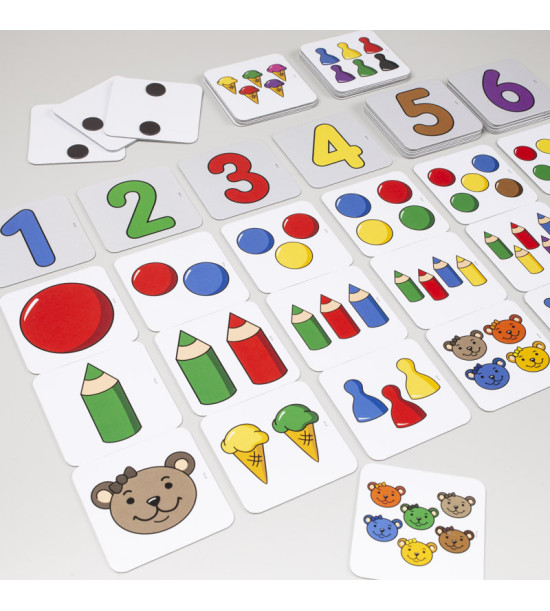 Děti postupně třídí a porovnávají počet předmětů na obrázku a následně přiřazují obrázky podle počtu k jednotlivým číslům. Pracovat mohou ve svislé nebo vodorovné linii podle zadání. Obsah: 36ks magnetické ilustrované obrázky / 9 x 9cm / pevný karton 2mm Kartonová krabice.