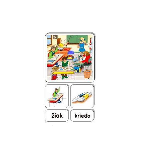 Soubor obrázků a textových kartiček umožňuje nácvik, procvičování a upevňování slovní zásoby, tvoření vět a dialogů k tématu Třída – SJ. Obsah: 1ks magnetické ilustrované obrázky / 18 x 18cm / pevný karton 2mm 26ks magnetické ilustrované obrázky / 9 x 9cm / pevný karton 2mm 33ks magnetické textové kartičky / 9 x 4,5cm / pevný karton 2mm Kartonová krabice.