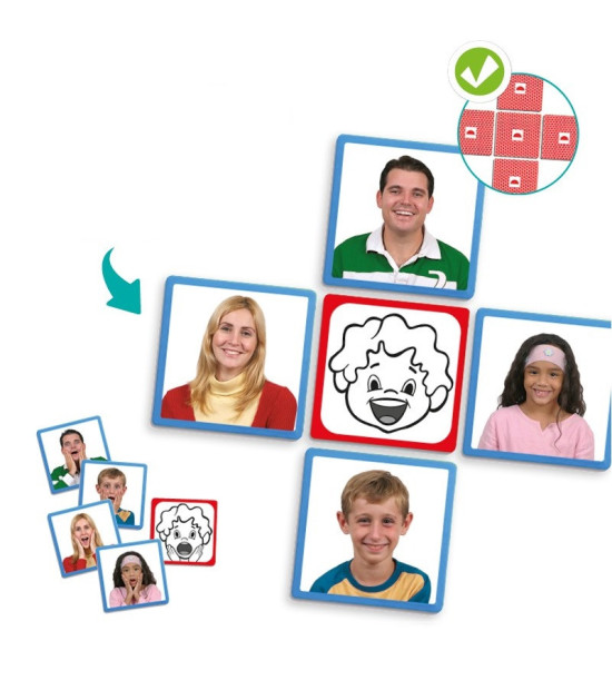 Hra je určena k rozpoznávání 10 různých výrazů obličeje a jejich spárování se čtyřmi osobami. Obsahuje celkem 50 fotokaret, samokontrolní opravný systém a pedagogický návod.