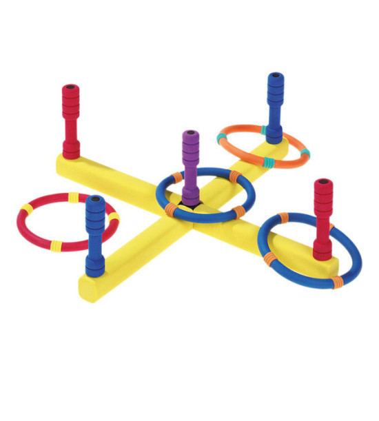 Populární hra do interiéru i exteriéru pro menší i větší děti. Jednotlivé části této populární hry jsou vyrobeny z tuhého polyuretanového materiálu. Dají se oddělit a uložit i do nejmenší tašky a vzít kdekoli s sebou jako hru. Balení: - 6ks kruhy/průměr 15cm, - 1ks základna/50 x 50 x 13cm.