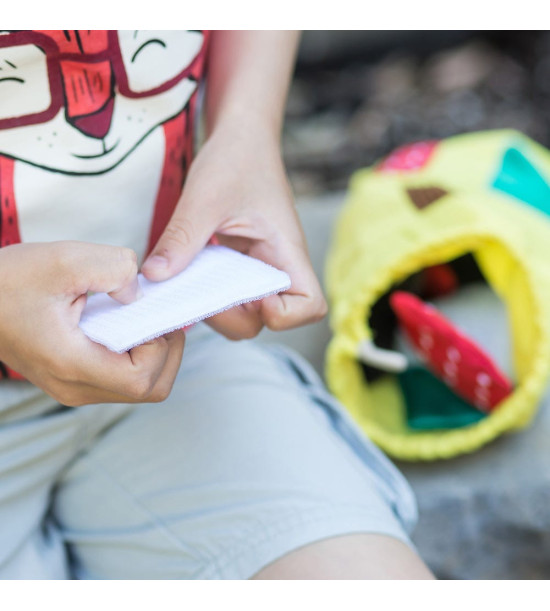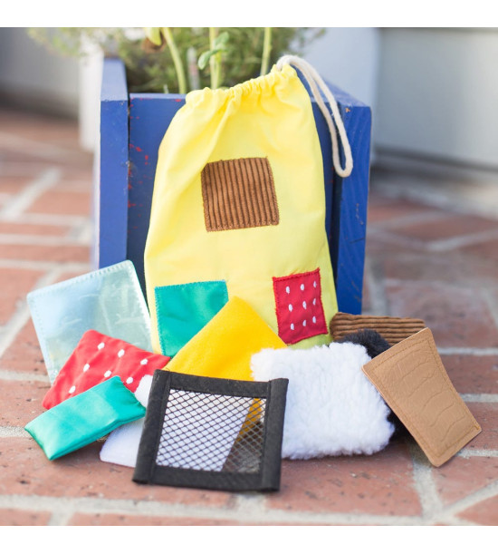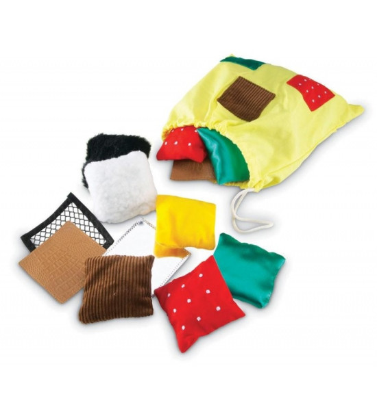 Drsné, hladké nebo jemné? Pomocí těchto polštářků si děti procvičí při různých hrách a aktivitách svoji slovní zásobu ve spojení s dotykovými vjemy. Balení obsahuje 10 párů polštářků z různého materiálu (chrastivý, chlupatý, se žmolky, hrudkovitý, rýhovaný, tvrdý, drsný, kluzký, hladký a jemný), velikosti 5 až 8 cm.
