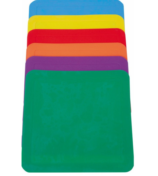6 ks univerzálních barevných podlahových značek. Jsou vyrobeny z měkkého plastu, který přilne téměř ke každému povrchu. Ideální pro označení místa ke stání, cíle pro házení a změnu směru. Protiskluzový povrch. Velikost cca 31x31cm.