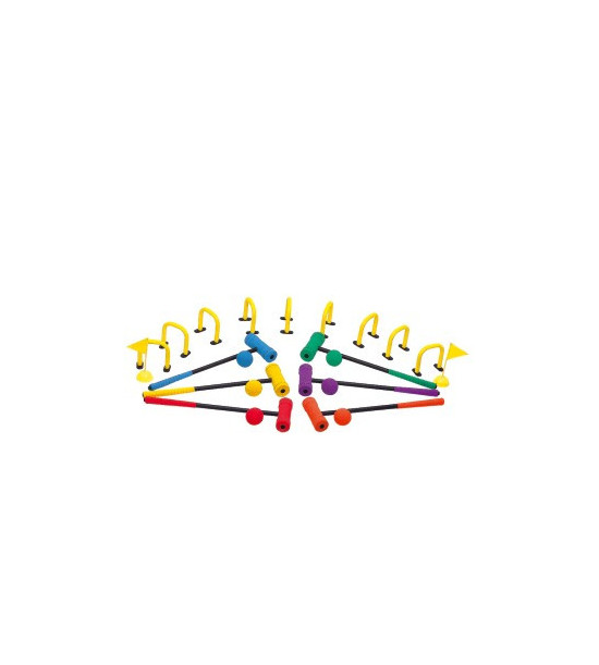Hra pro děti všech věkových skupin. Poutavou a kolektivní formou rozvíjí soustředěnost, motoriku a koordinaci pohybů. Nářadí je přiměřeně lehké pro pohodlnou hru, ale dostatečně robustní pro zajištění odolnosti před poškozením a vysoké životnosti v podmínkách základních, mateřských a speciálních škol. Celá hra je vyrobena z kombinace kompozitního plastu a UltraFoam pěnové hmoty. Obsah: 6ks golfové hole / délka 63cm 9ks branky / 15 x 15cm 6ks míčky z pěnové hmoty / průměr 8cm 2ks zastávky / 23cm