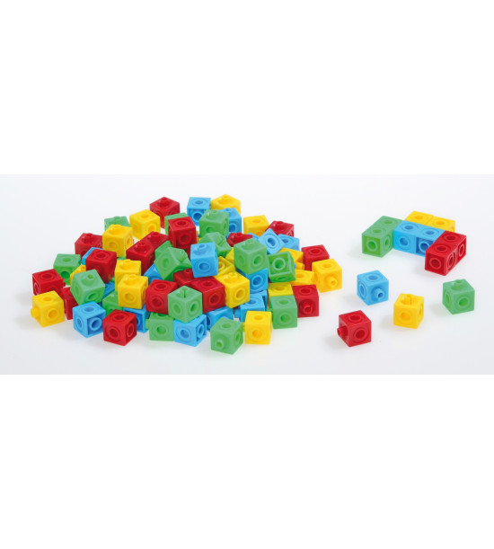 100ks kostek v sáčku. Plastové spojovací kostky s hranou 2cm v pestrých barvách. Ideální materiál pro první matematické představy a zjištění: porovnávání, množství, třídění, počítání a další. Vhodné také pro snadné tvoření rovinných a prostorových útvarů.