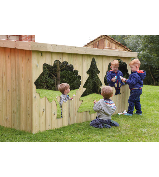 Zrcadla přinášejí do zahrady světlo, opticky ji zvětšují, ukazují skrytá zákoutí a fascinují děti. Lze na ně kreslit křídou nebo tekutou barvou. V sadě jsou 3 různá zrcadla ve tvaru stromů. Takto se děti nenásilným způsobem učí rozeznávat tvary a druhy dřevin. Každý strom má několik otvorů pro upevnění šrouby (šrouby nejsou součástí balení. Rozměry zrcadel: výška max. 85 cm, šířka max. 80 cm.