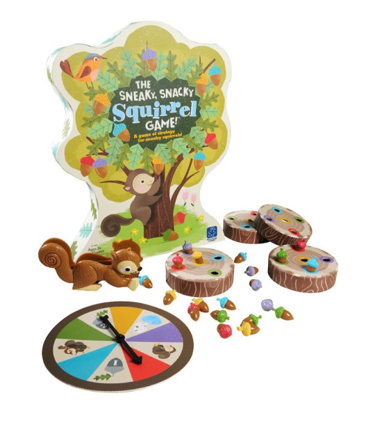 Milá hra k procvičení jemné motoriky a koordinace. Děti pomocí pinzetky ve tvaru veverky sbírají barevné žaludy a umisťují je do správných otvorů. Balení obsahuje 20 barevných žaludů, pinzetku, točící ruletku a hrací desky pro hráče.