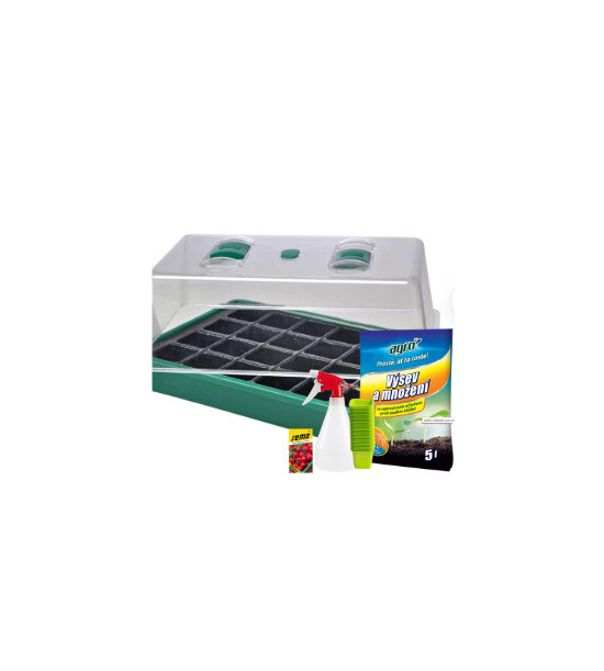 Obsah sady: praktický mini skleník - rozměr 37x23x18 cm, materiál plast, rozprašovač na vodu, sazenice rajčata, substrát - 5L, nádoby na výsadbu. Stačí mini skleník naplnit substrátem, přidat semínka, zalévat a sledovat, jak klíčí.