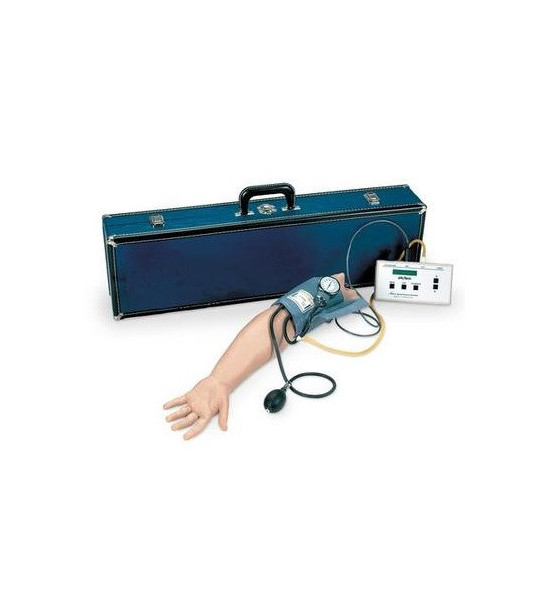 Simulátor krevního tlaku pomáhá překonat nejistotu, která je běžná při výuce studentů. Realistický model umožňuje přednastavení hodnot systolického i diastolického tlaku, poslech a rozlišování krevního tlaku před vlastní klinickou zkušeností, rozpoznávání 5 korotkoffových fází, elektronicky generované zvuky se digitálně zaznamenají. Instruktor může spolehlivě zjistit, zda student provádí postup přesně. Lehká kalibrace přístroje pro použití s jakýmkoli sphygmomanometrem. Simulátor tlaku krve obsahuje ruku s integrovaným reproduktorem, přístroj na měření krevního tlaku, elektronickou řídící jednotku. Neobsahuje stetoskop.